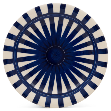 Fayence weiß dunkel- hellblaue Bänder Glasur glänzend