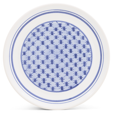 Fayence weiß Bienchenmuster blau Glasur glänzend