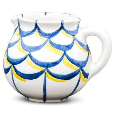 Fayence weiß blau/gelbe Fischschuppen im Kreis Glasur glänzend