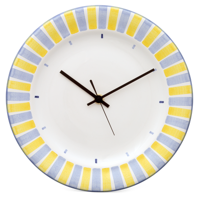 Die Wanduhr von Hedwig Bollhagen mit der Formnummer "123S" zeigt nicht nur zuverlässig die exakte Uhrzeit an, sondern glänzt auch durch nostalgische Nonchalance. Angesichts des formschönen Vintage-Designs der handgemachten und handbemalten Wanduhr könnte man meinen, dass die Zeit stehen geblieben wäre – diese Keramikuhr hätte schon Großmutter gefallen. Gleichzeitig begeistert die Telleruhr mit zeitloser Schlichtheit, die auch modern gehaltene Räume stilvoll aufwertet. Dank eines Durchmessers von 23 Zentimetern findet die 4 Zentimeter hohe Uhr 123S Platz an vielen Wänden. Die Tellerform verleiht der 500 Gramm leichten und langlebigen Keramik einen urigen Charme. Jede Wanduhr 123S ist ein Unikat traditioneller Keramikherstellung der HB Werkstätten in Marwitz.