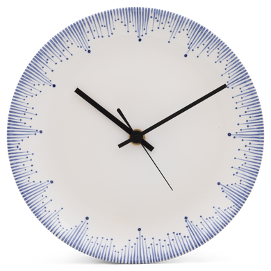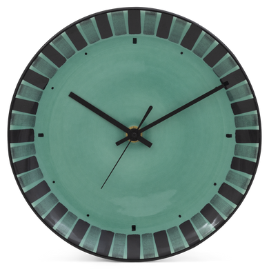 Die Wanduhr von Hedwig Bollhagen mit der Formnummer "502S" zeigt nicht nur zuverlässig die exakte Uhrzeit an, sondern glänzt auch durch nostalgische Nonchalance. Angesichts des formschönen Vintage-Designs der handgemachten und handbemalten Wanduhr könnte man meinen, dass die Zeit stehen geblieben wäre – diese Keramikuhr hätte schon Großmutter gefallen. Gleichzeitig begeistert die Telleruhr mit zeitloser Schlichtheit, die auch modern gehaltene Räume mit gefälliger Eleganz aufwertet. Dank eines Durchmessers von 20 Zentimetern findet die 4 Zentimeter hohe Uhr 502S Platz an vielen Wänden. Die Tellerform verleiht der 600 Gramm leichten und langlebigen Keramik einen urigen Charme. Jede Wanduhr 502S ist ein Unikat traditioneller Keramikherstellung der HB Werkstätten in Marwitz.