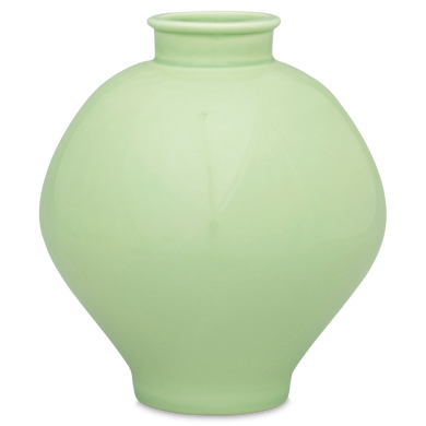 Die Vase von Hedwig Bollhagen mit der Formnummer "354" setzt nicht nur florale Arrangements ins beste Licht, sondern begeistert auch ohne Blumen als auffallend schönes Highlight. Charakteristisch für die handgemachte Vase 354 aus Keramik ist ihre bauchige Gestalt in leicht elliptischer Fasson. Der fließend geschwungene Fuss und der zylindrisch hochgezogene Hals mit rund geschwungenem Rand akzentuieren das harmonische Design der Kugelvase. Dank dieser Formgebung kommen runde Blüten wie Hortensien oder Pfingstrosen besonders feierlich zur Geltung. Bei einem Durchmesser von 12 Zentimetern ist die 13,5 Zentimeter hohe und 450 Gramm leichte Vase beinahe genauso breit wie hoch – perfekt ausgewogene Maße für stilvolle Dekoideen jeglichen Gustos.