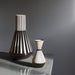 Die Vase mit der Formnummer “736” von Hedwig Bollhagen besticht durch ihre kühne und moderne Form, sondern stellt wie kaum eine andere Hedwig Bollhagens Nähe und Verbundenheit zum Bauhaus dar. Streng und sachlich in der Form avantgardistisch in der Idee, ist sie die Verkörperung der Bauhausmaxime: Kunst und Handwerk gehören zu einander. Charakteristisch sind der bauchig-kugelförmige Fuß, der voluminöse, kegelförmig nach oben und innen fließende Korpus und der langgezogene, zylinderförmige Hals. Bei einer Breite von 28 Zentimetern und einer Höhe von 50 Zentimetern ist die Vase etwa doppelt so hoch wie breit.
